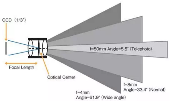 视场角与焦距的关系:一般情况下,视场角越大,焦距就越短。