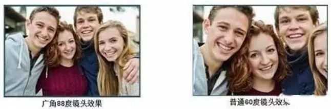 下图是88度视场角镜头和60度视场角镜头效果对比,明显可以看出88度视场角镜头拍摄范围更大。