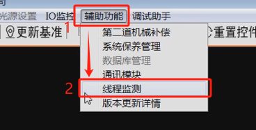 在主界面上侧菜单,找到辅助功能功能栏下的线程监测,点击打开