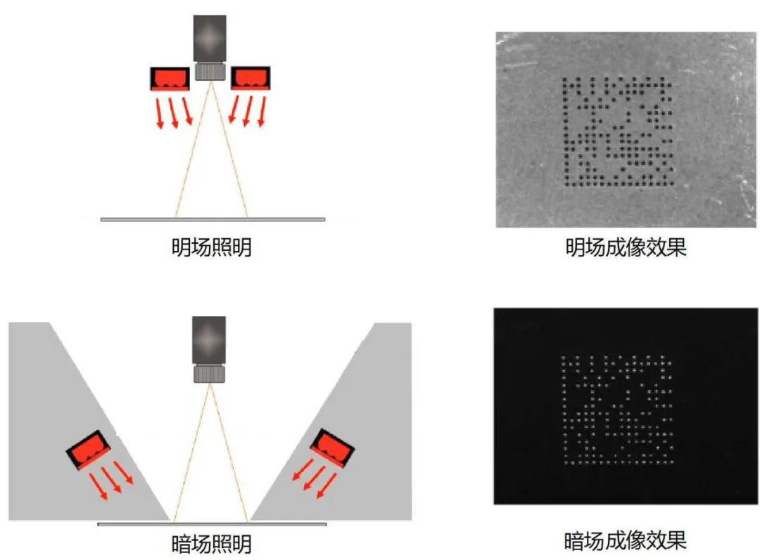 机器视觉(machinevision)照明技术主要任务为提升被测物体特征与背景之间的对比度。对比度越大,感兴趣物体特征越明显,降低后期很多图像处理工作,提升整个机器视觉系统效率。观测相同的物体,一旦照明方式不同,观测到的画面就会发生惊人地变化。如下图,分别采用明场照明和暗场照明,光源照射角度不同,成像效果差异明显。选择合适的照明技术可能看起来是个黑盒子,大多数人们都是基于工作经验选择,通过尝试不同照明方式判断是否可行。枚举尝试经验方法耗时耗力。因此理解照明技术,科学有效快速选择合适的照明方式至关重要。
