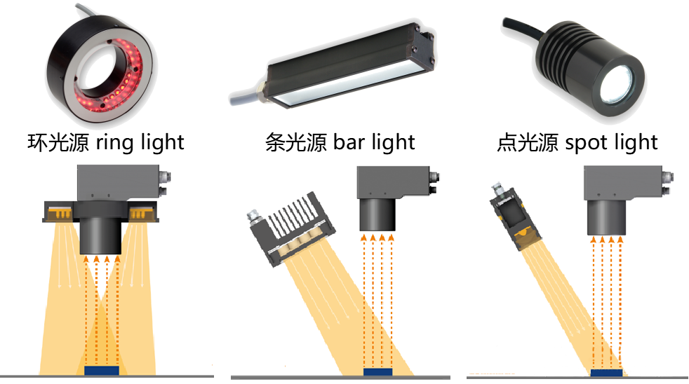 部分明场PartialorDirectionalBrightField在有效工作距离中,拥有较小立体角的光源,如环形光源(ringlight)、条形光源(barlight)或者点光源(spotlight)等直射光。光源光束以某一方向照射物体。