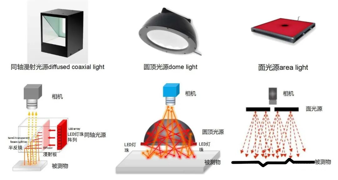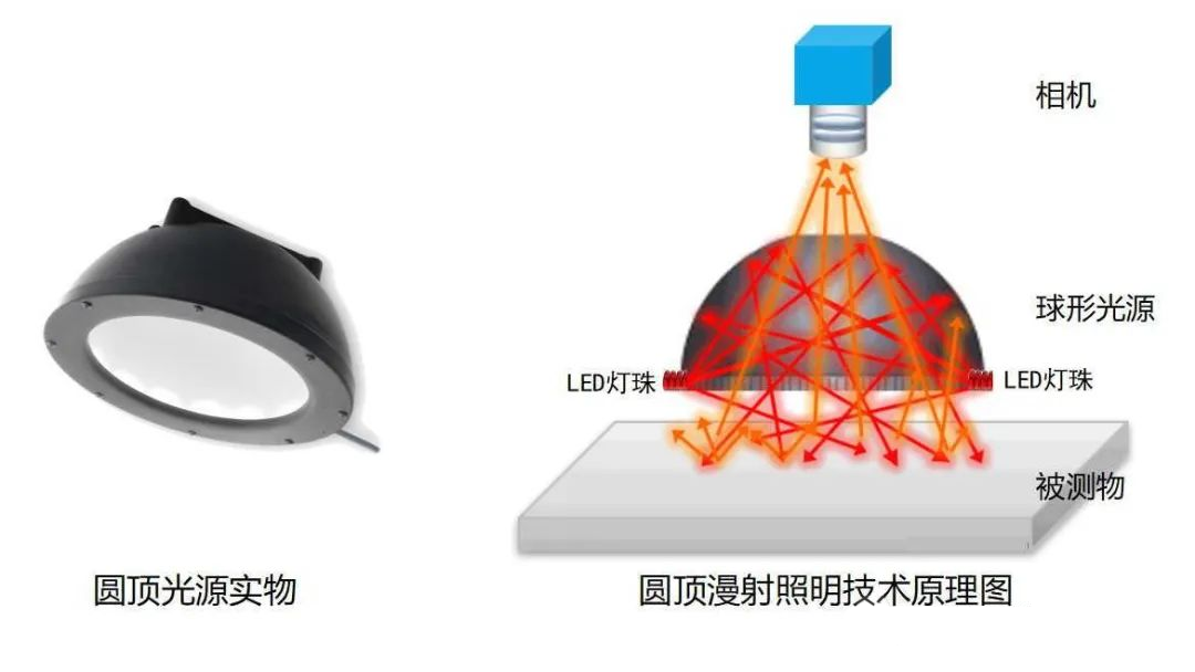 产生漫射光的光源有同轴漫射光源和圆顶光源等。