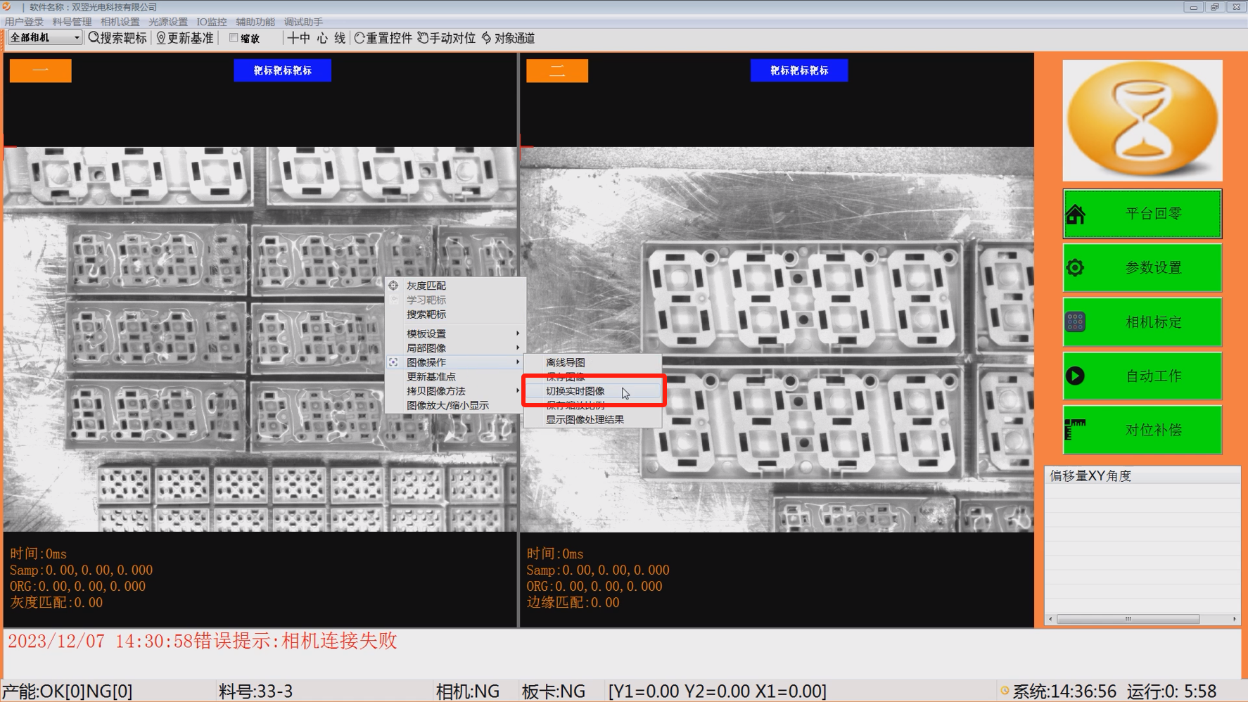 图像显示区域,点击鼠标右键,鼠标移动到图像操作,点击选择切换实时图像