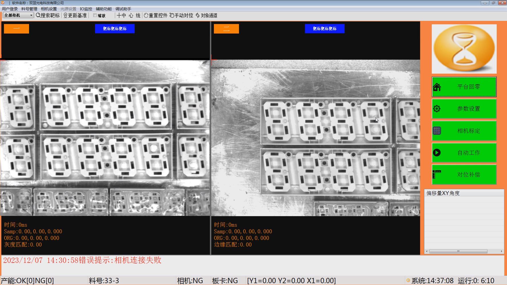 运行WiseAlign.exe程序,进入软件可以看到,主界面主要分4个区域(左上角:工具栏;右侧:功能按钮;中间:图像显示;下侧:报警信息)
