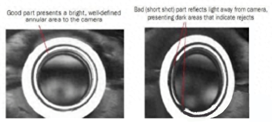 亮场照明技术依赖表面纹理和平坦地形。光线遇到平坦反光的表面将光线反射回到相机,创立一个亮区域。粗糙纹理或表面缺损会将光线散射而远离相机,创立了暗区域。