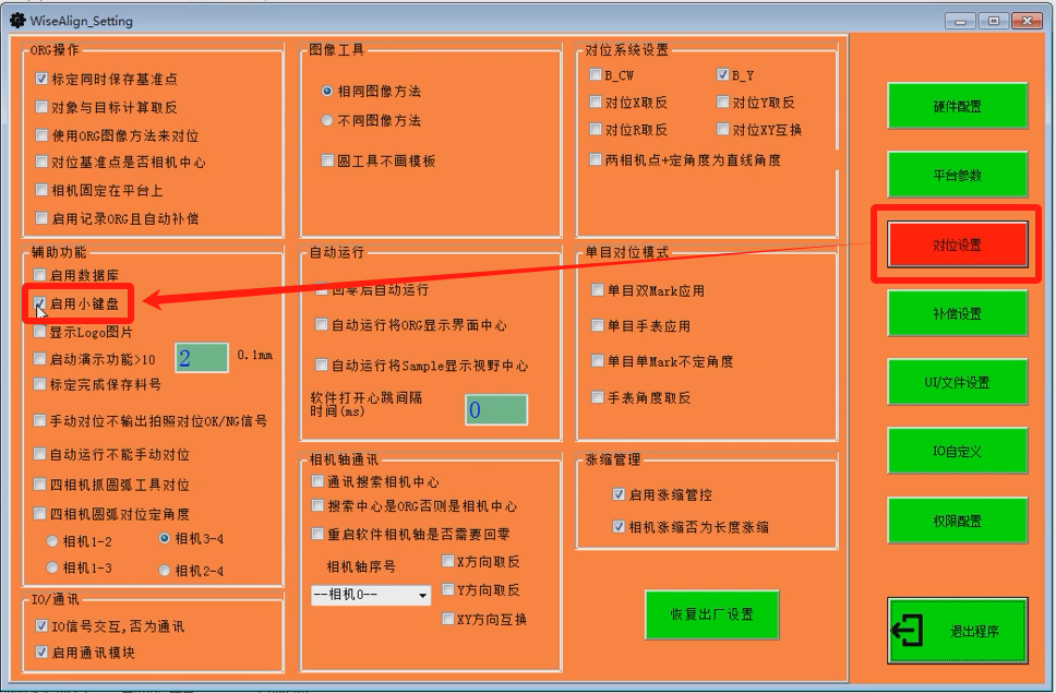 在软件根目录位置找到“WiseAlign-Setting”点击打开软件设置界面;