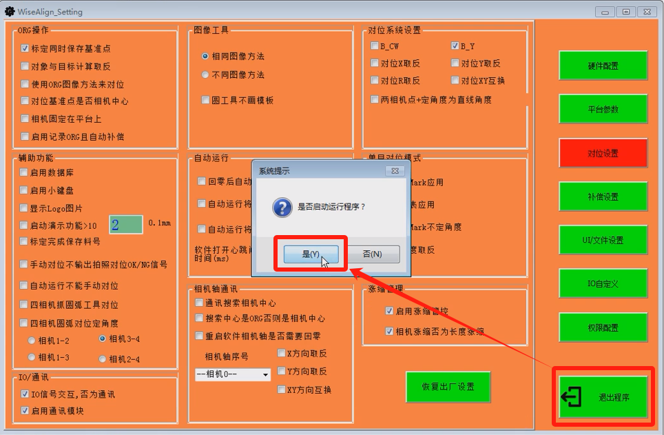 勾选完毕后,点击“退出程序”,弹出框点击“是”打开软件