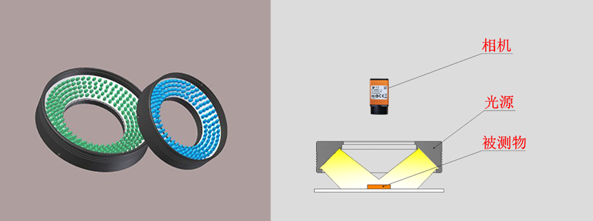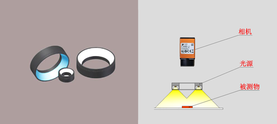 图7:塑料瓶盖表面缺陷检测所用的光源及打光方案。