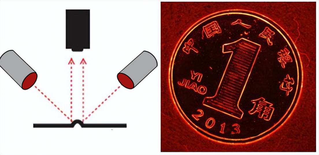 2. 暗场照明:暗场照明是相对于物体表面提供低角度照明。