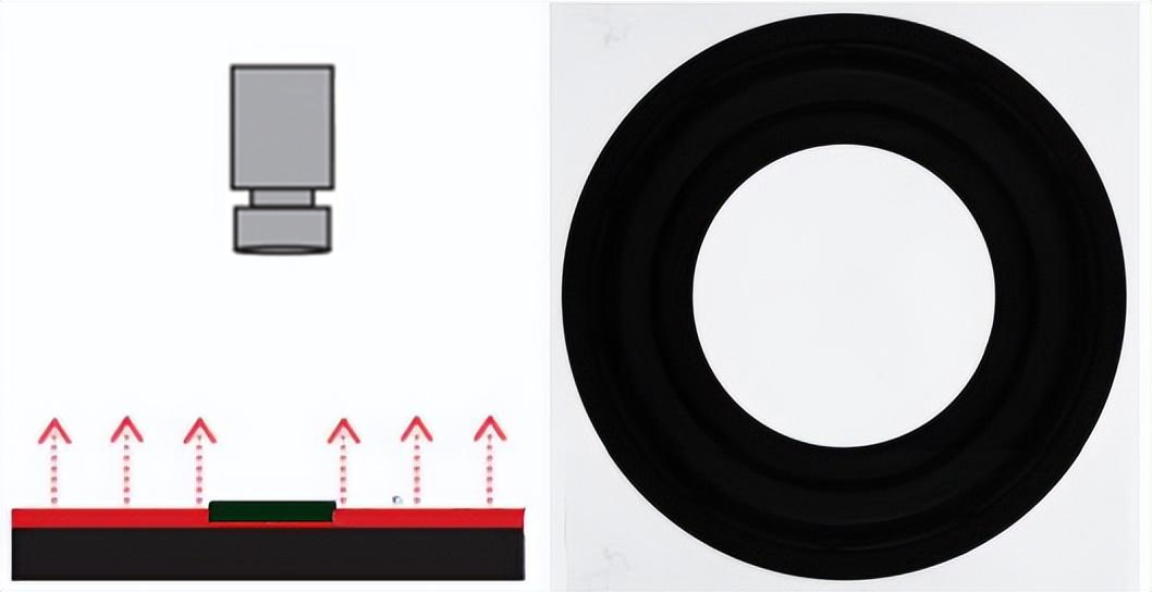当我们需要得到高对比度物体图像的时候,这种类型的光很有效。但是当我们用它照在光亮或反射的材料上时,会引起像镜面的反光。通用照明一般采用环状或点状照明。环光是