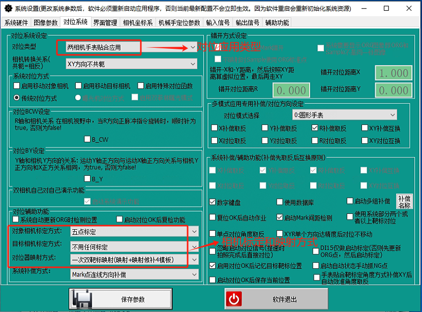 系统采用五点标定,通过软件控制XYR平台自动完成相机和平台的关系建立