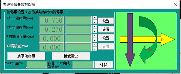 根据实际应用需求,机械手吸盘抓取物料中心位置偏差进行补偿。补偿的方向参照机械手的的坐标系方向。如图方向所示。