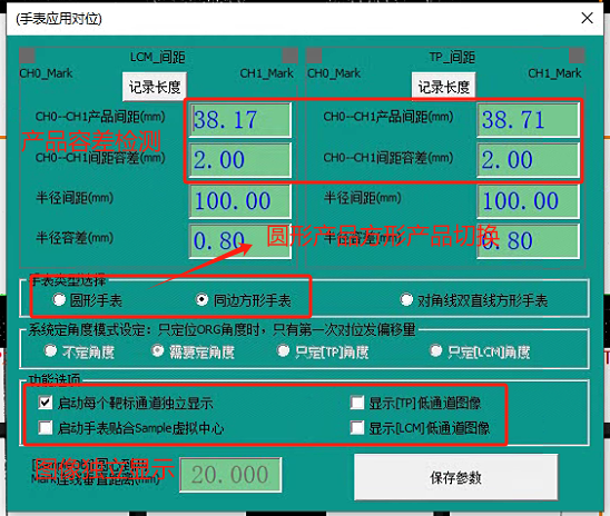 (1)圆形手表需换型图像模板学习完需要更新基准点,方向手表不需要