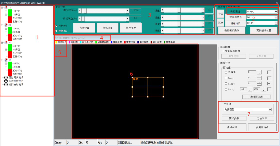 1、对位设置:设置对位参数信息,如延时、精度等;