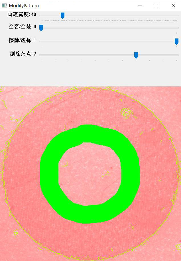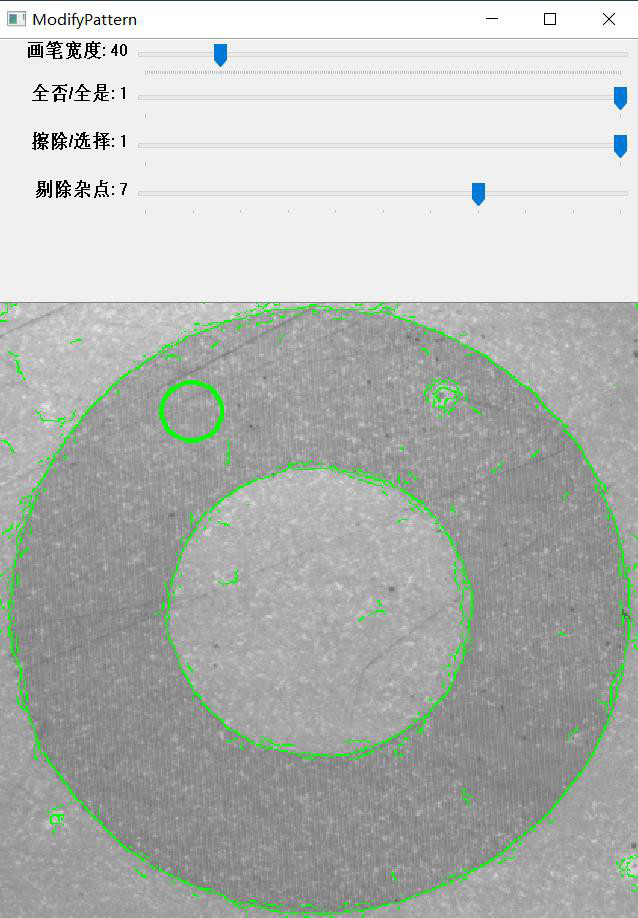 当图像的质量较差时,边缘模糊产生大量的杂点;从而增加了搜索的时间,同时影响了搜索的准确性。通过调整【剔除杂点】去除大部分的干扰点,优化了模板的轮廓信息。
