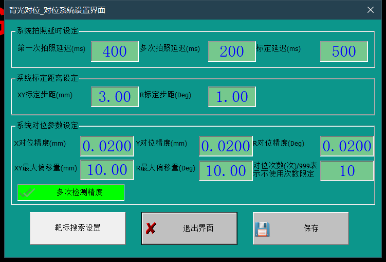 5、对位次数:设置对位的最大次数,当超过设定值则对位失败。多次对位精度:需要开启。