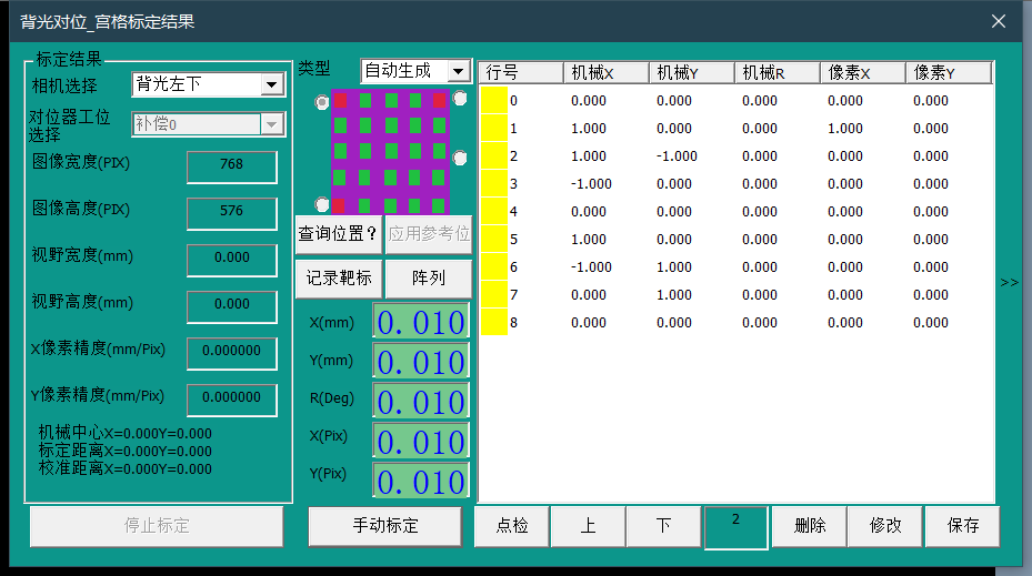 4、X 像素精度:单个像素横向代表实际中的距离。单位 mm/pix。 Y 像素精度:单个像素竖向代表实际中的距离。单位 mm/pix。标定检查:X 像素精度与Y 像素精度数值越接近越好;