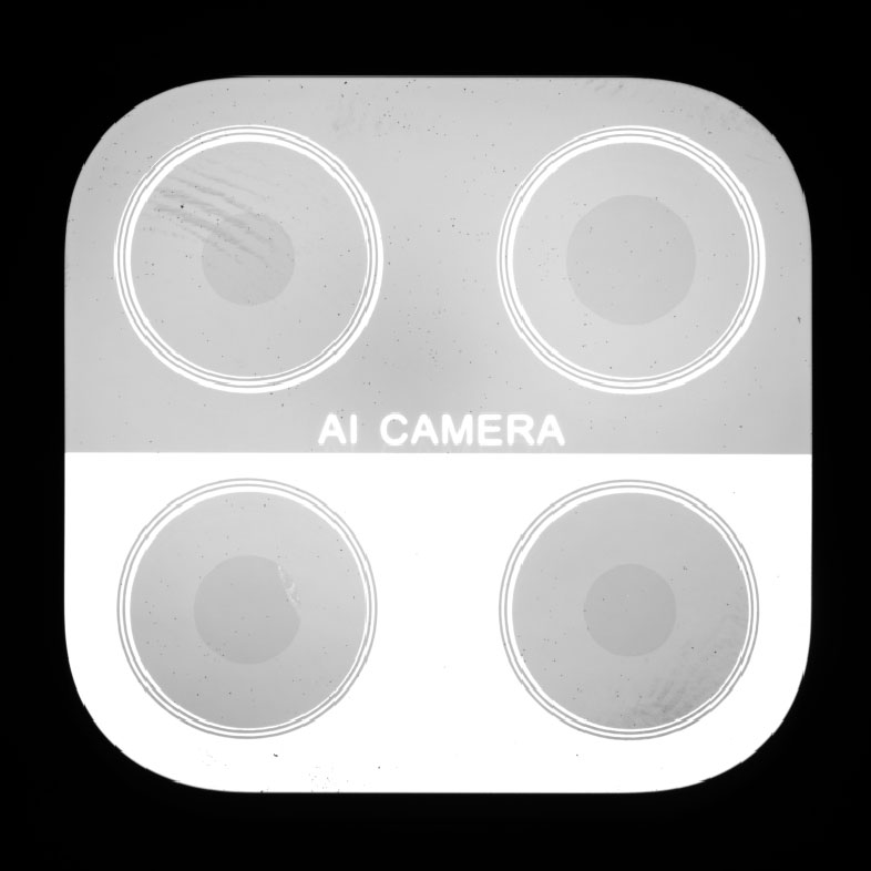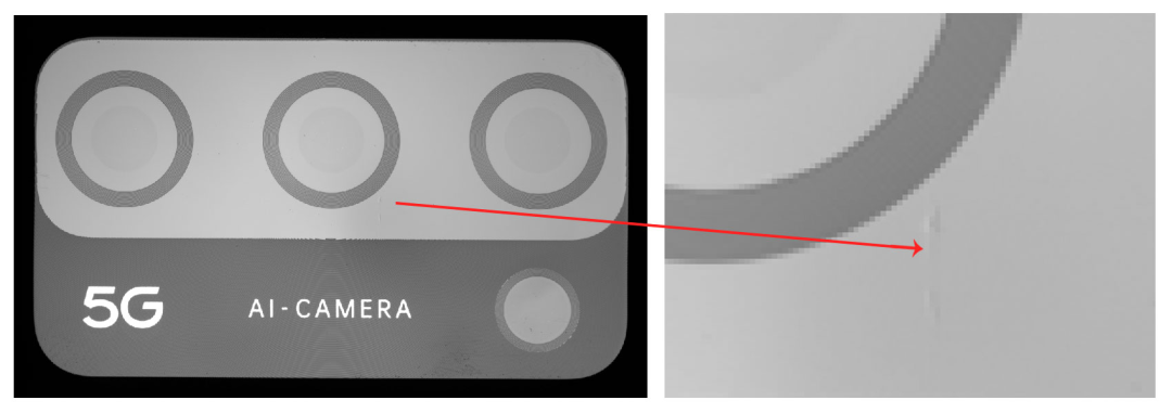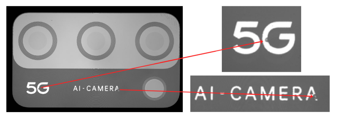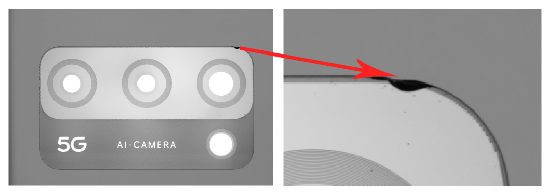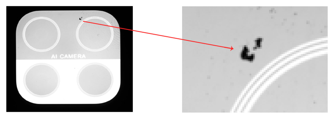 手机镜片制造商,需要对出货前的产品进行外观检测,包括披风、蚀刻不良、异色、字体不良、崩边、边透沙眼、划伤、晶点、亮点等不良。