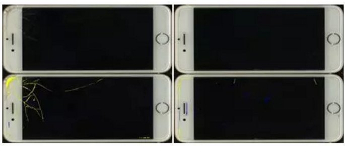 在检测过程中,可实现不同尺寸、型号手机玻璃面、后盖、侧面、圆弧面的全方位检查,快速、精准地检测出划痕、碰伤、脏污、边缘银边、漏光等缺陷,省去了人工干预的环节。
