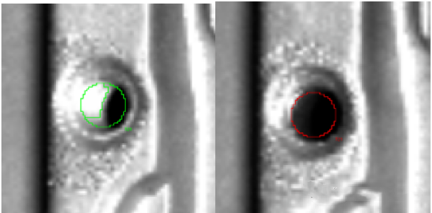 ·检测是否漏攻牙,由于牙孔内螺纹与CCD不在一个平行的平面,加上牙孔较小且受深度干扰,难度大。