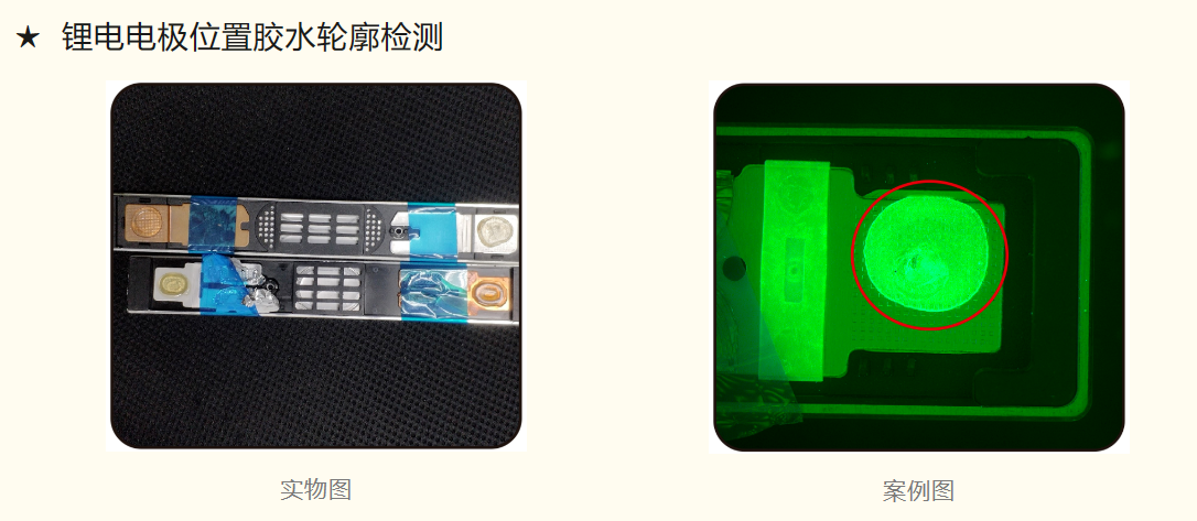 由于在锂电的封装中使用了胶水,所以胶水轮廓的检测,也是锂电生产中必不可少的一环。