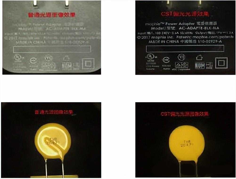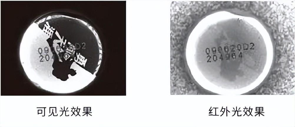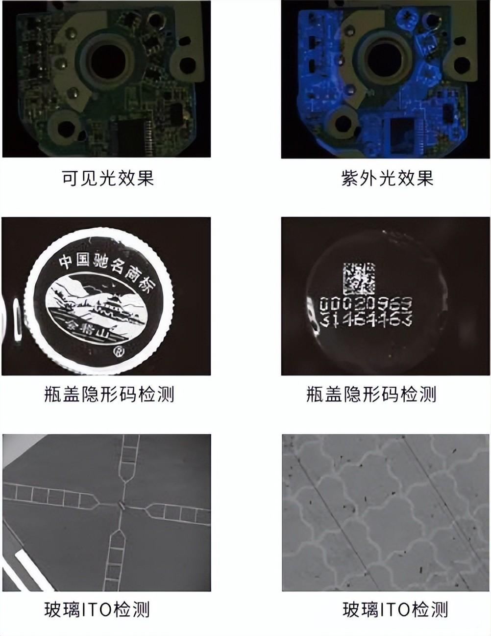 利用荧光效应检测UV胶和隐形码,另一方面,与红外光相反,弱穿透性可用于检测透明产品中的隐形特征。