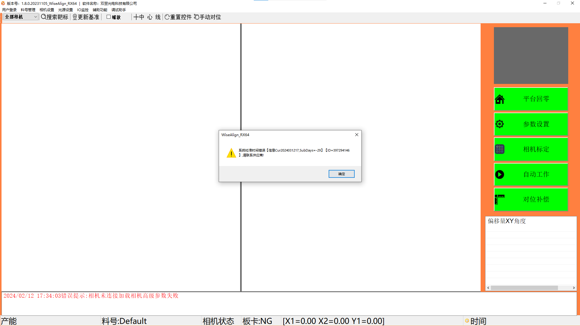 WiseAlign视觉对位软件提示系统校准时间错误解决方案