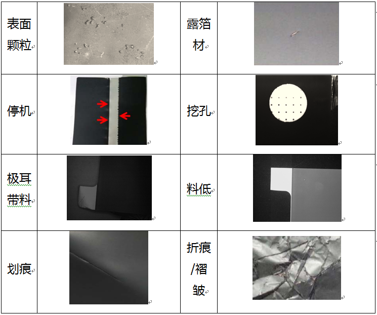 电池的生产过程中,会因为涂布机、辊压机的原因产生露箔、暗斑、亮斑、掉料、褶皱等一系列缺陷。涂布对于电池的性能有着很大的影响,极片涂布的一般工艺流程是:放卷→张力控制→自动纠偏→涂布→干燥→自动纠偏→张力控制→收卷。在涂布工艺中,涂料、辊压环节都有可能导致极片缺陷,严重影响电池的性能和使用寿命,甚至发生爆炸,威胁人身安全和财产安生。