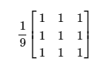 基于上述公式,可以很容易的得到的算术均值滤波器的窗口模板,下面以3×3为例