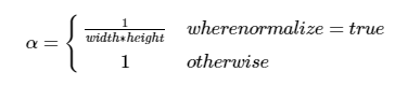 和blur的参数比较类似,所不同的ddepth是滤波后图像的深度,-1表示和原图像的深度相同;参数normalize表示是否有归一化的参数,这是因为在boxFilter使用的模板如下: