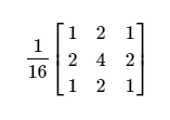 不同于上面的所有像素的系数都是相同的,加权的均值滤波器使用的模板系数,会根据像素和窗口中心像素的距离而取不同的系数。赋予中心点最高的权重,然后随着离中心点的距离增加而减小系数,这样做的目的是在平滑图像的同时尽量降低对图像的模糊。最常用的加权模板如下(3×3)为例: