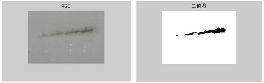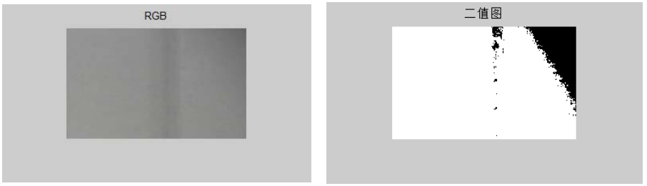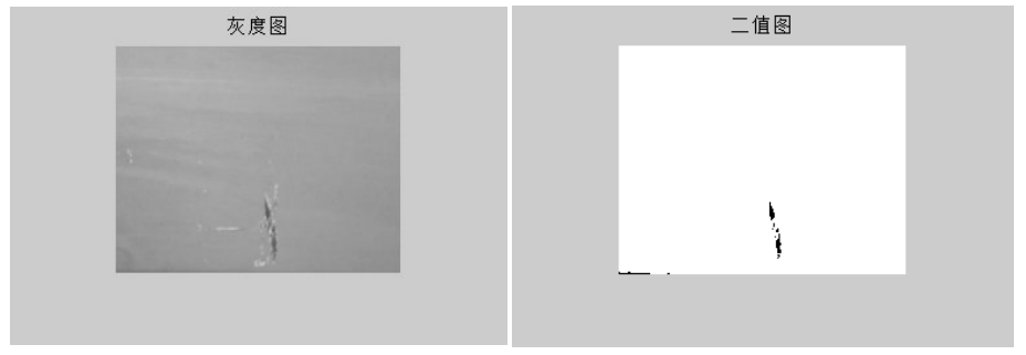 通过对采集的图像进行二值化处理,可以较为清楚的得到图像中的缺陷部分,如二值图中的黑色部分。对比无缺陷的板材表面图像,可以清晰的发现缺陷图像的缺陷区域,为以后的图像进一步处理和特征提取提供了方便。