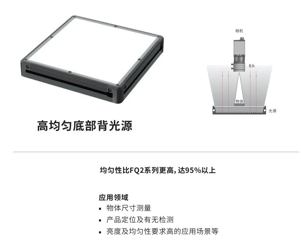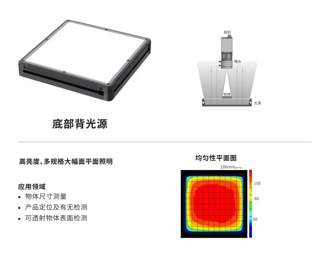 特点:底部背光源从下方照亮物体,突出其轮廓和形状,非常适合生成高对比度的图像,以便进行形状分析和尺寸测量。