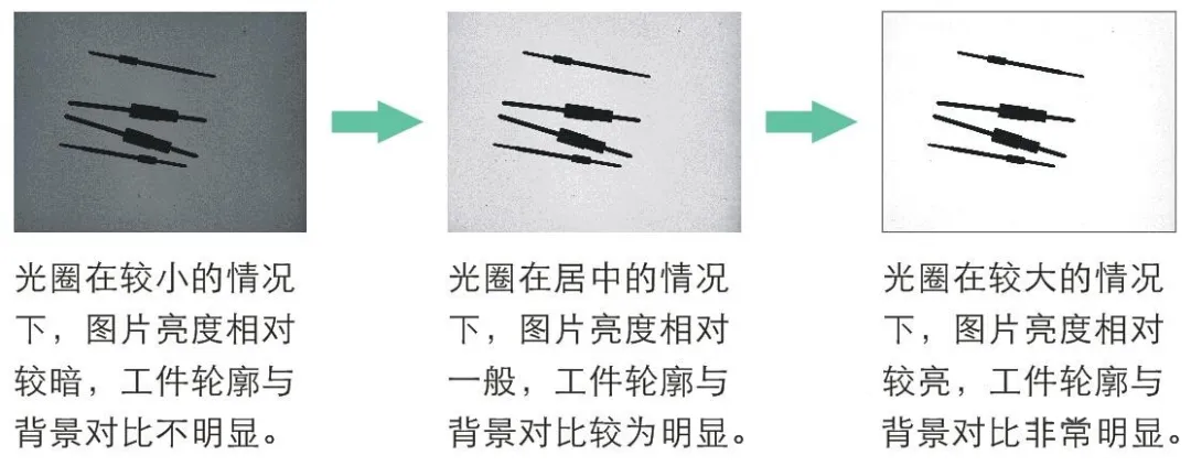 光圈对图片亮度的影响:相同应用条件下,同一镜头,光圈越大,通光孔径越大,图片越亮。