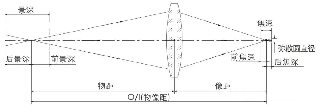 景深:能在像平面上获得清晰像的物方空间深度。即:在被摄物平面(对焦点)前后一定范围内的物体,在无需调焦的情况下,其成像仍然清晰,这段可清晰成像空间深度就是景深。