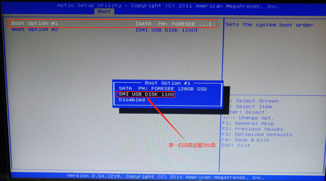 进入此菜单设置优先级为相应的U盘,按F4保存设置