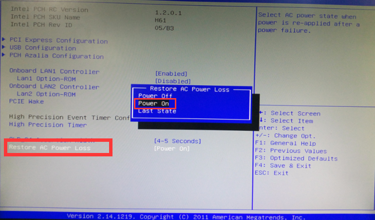 "选中Restore AC Power Loss"选项,设置为“Power On”,设置此选项的目的为电源开启后,伟德国际唯一官网入口视觉控制器自动启动。
