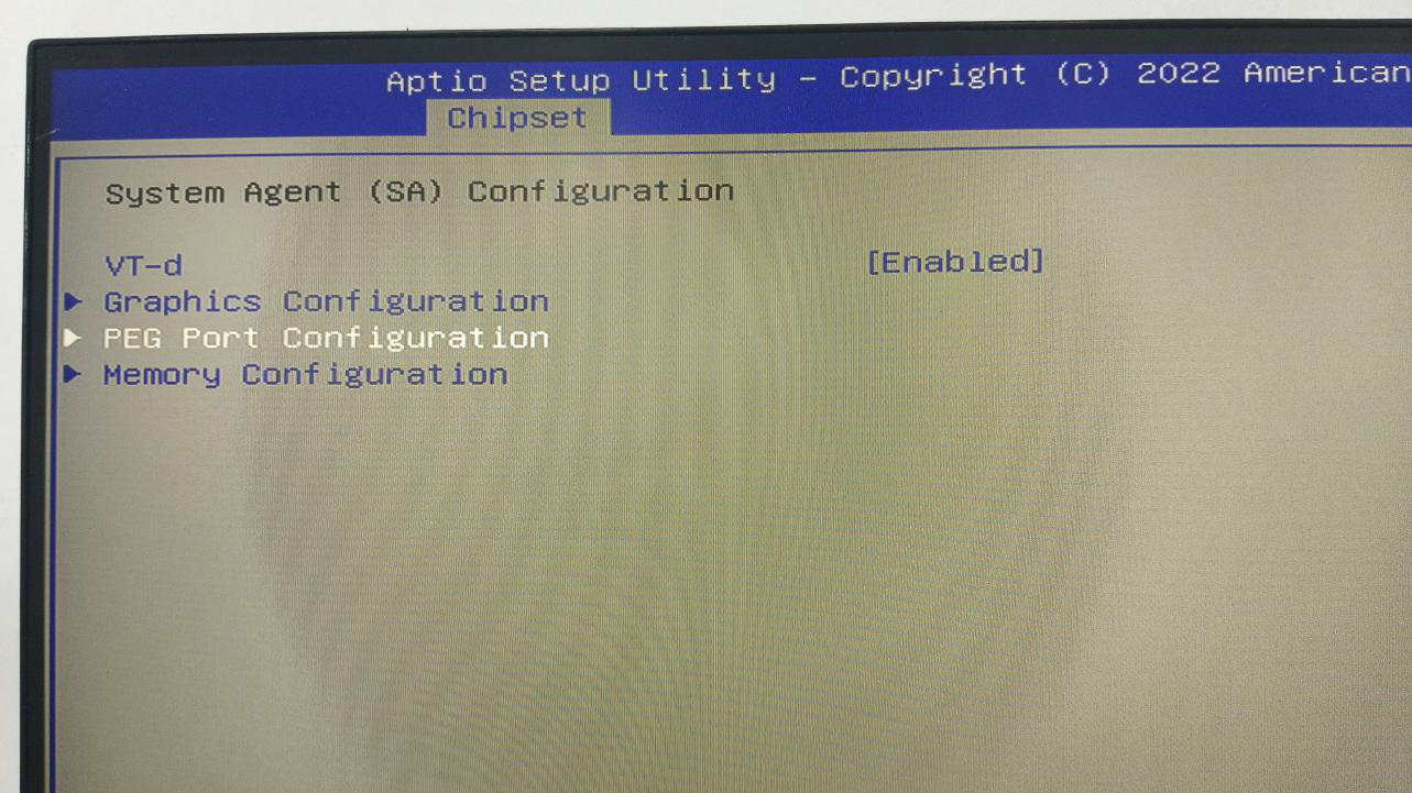 5.向下移动到“PEG Port Configuration”并按回车键进入