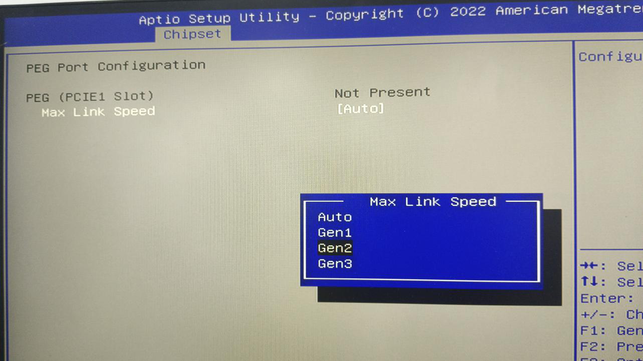 6.回车键进入“Max Link Speed”选项里,选择“Gen2”,并按回车键