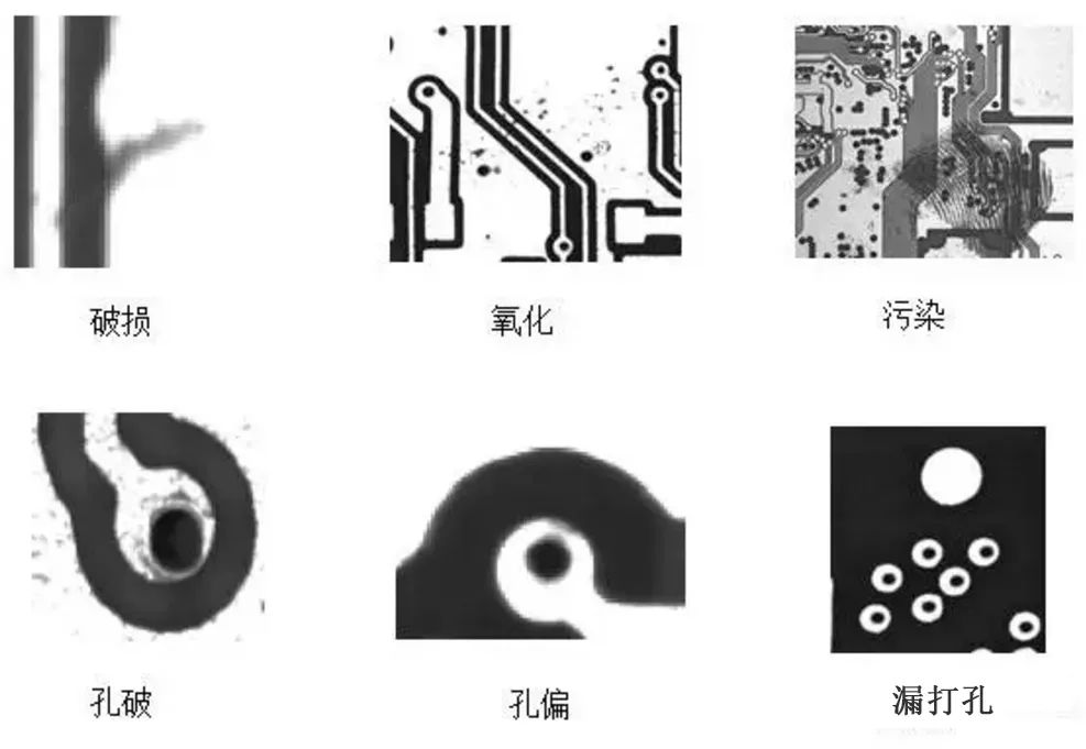 外观检测是质检环节中非常重要的一部分,对检测的精度、效率、速度等方面都有很高的要求。PCB的内部工艺复杂,除了芯板结构层压、钻孔、布线外,还需要考虑埋置元件、表面涂饰、清洁和蚀刻等。由于对生产设备的精度和材料性能依赖程度高,一般在设计制作过程中,很容易出现以下各类问题:
