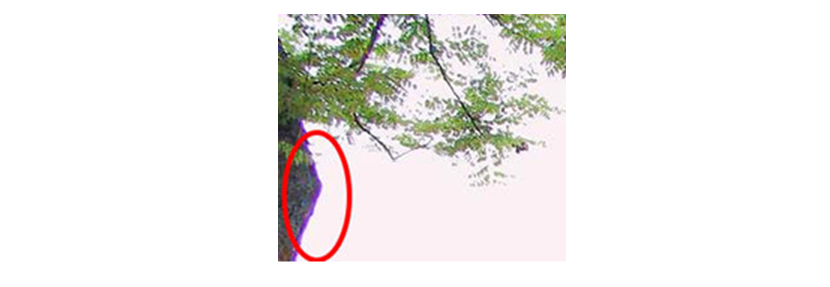 为什么 Mr.OH! 称:『紫边问题(Purple Fringe)』,而不是『紫边效应』呢?这是因为这个问题的发生,拥有好几种说法,目前比较广为接受的就是『镜头色散』与『CCD颜色插值』运算之问题。这个问题的发生在於拍摄高反差的景物时,例如:背光环境(下图),在明暗交界的边缘部分会出现异常的紫色。