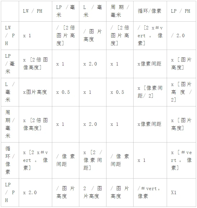 空间频率单位转换图
