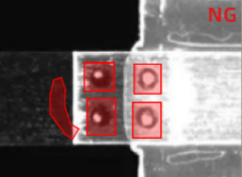 (c)气泡:在涂布过程中涂覆在金属箔上的浆料中混入了气体,使电极片在烘干的过程中某一圆形区域的浆料涂层出现凹凸不平的情况,从而形成的一类缺陷。