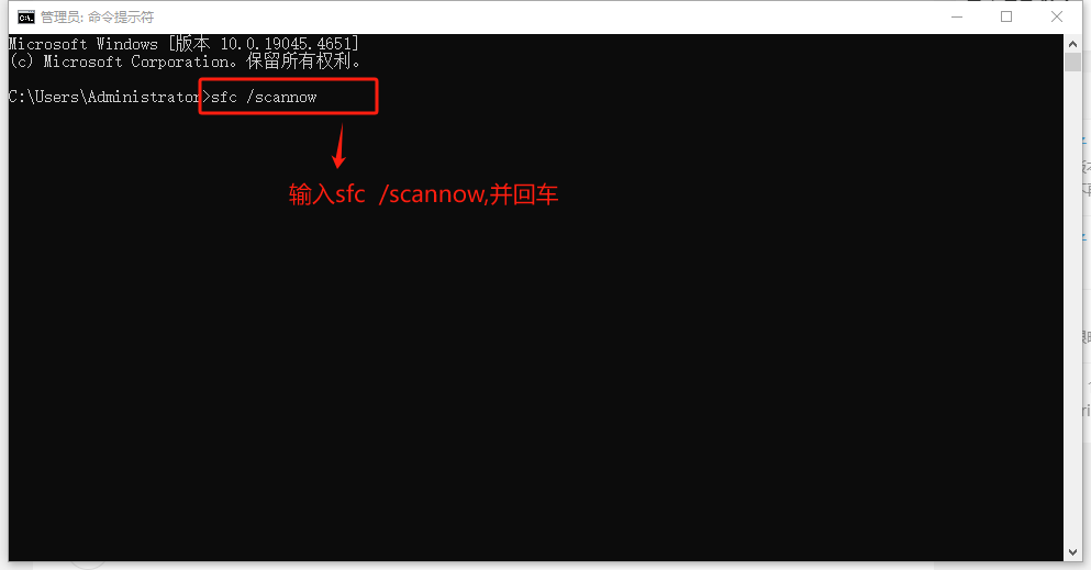 2、在 CDM 窗口中执行如下命令:sfc /scannow