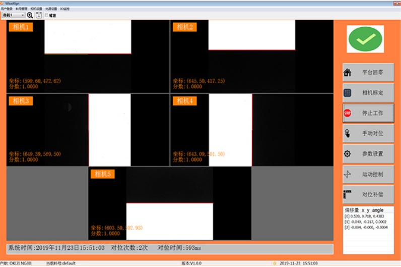 在玻璃盖板的丝印应用中,较多应用的是5CCD与6CCD,WiseAlign-5C相机自对位系统与WiseAlign-6C相机自对位方案在工业自动化领域内应用极为广泛,机构工艺简单易实现,软件操作简单容易上手。对于玻璃盖板这一对精度要求极高的应用场景,WiseAlign系列软件能够确保对位精度达到惊人的±0.02mm级别,这一精度标准远超行业平均水平,有效满足了高端电子产品对品质与精度的极致追求。