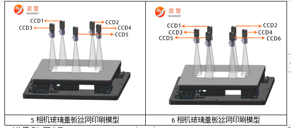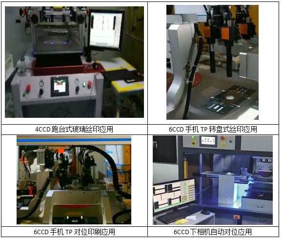 此方案适用领域为:透明材质的FPC、玻璃、亚克力,以及非透明材质都可适用,而5CCD、6CCD视觉对位丝印机系统,主要更多的应用在玻璃丝印应用领域。