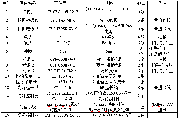 硬件配置清单如下: