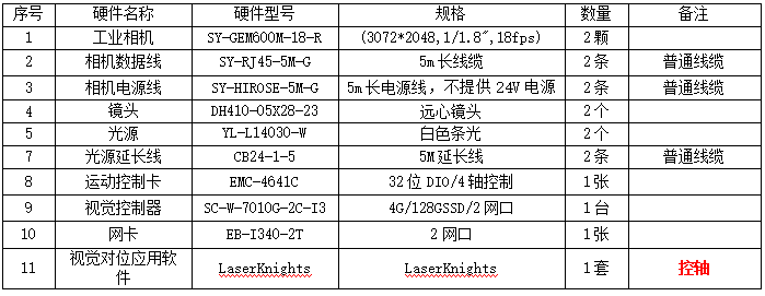 硬件配置清单如下: