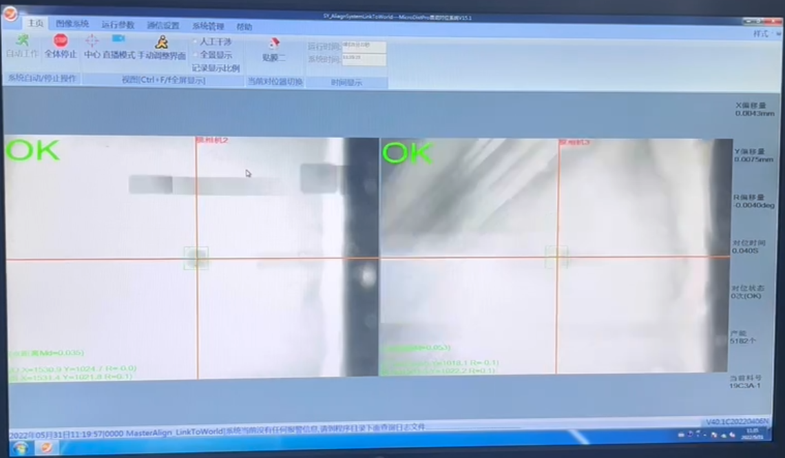 MasterAlign-2C两相机映射对位在工业自动化中应用非常广泛,机构工艺简单易实现,软件操作简单容易上手。此案例中使用软件进行高精度的对位应用,对位精度可达到±0.02mm,而工作中稳定保持对位时间在0.04s内完成。