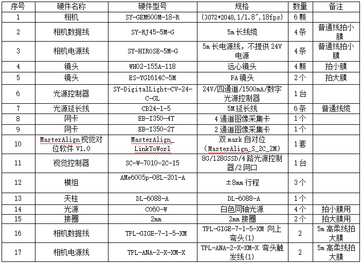 硬件配置清单如下: